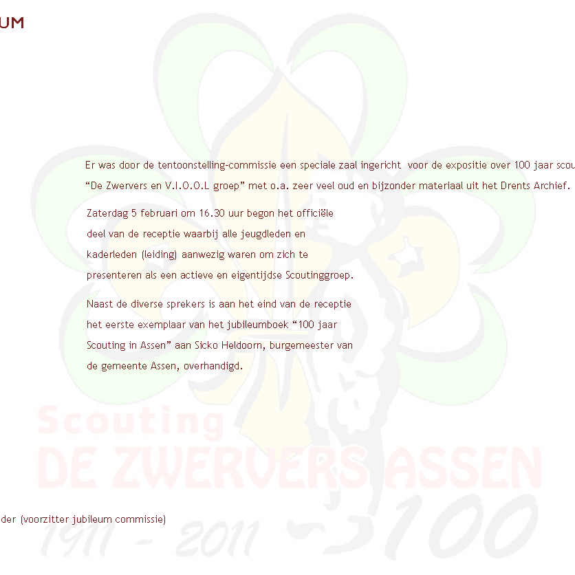 Vrijdag 4 februari 2011 bestond Scoutinggroep “De Zwervers” 100 jaar en dat is gevierd